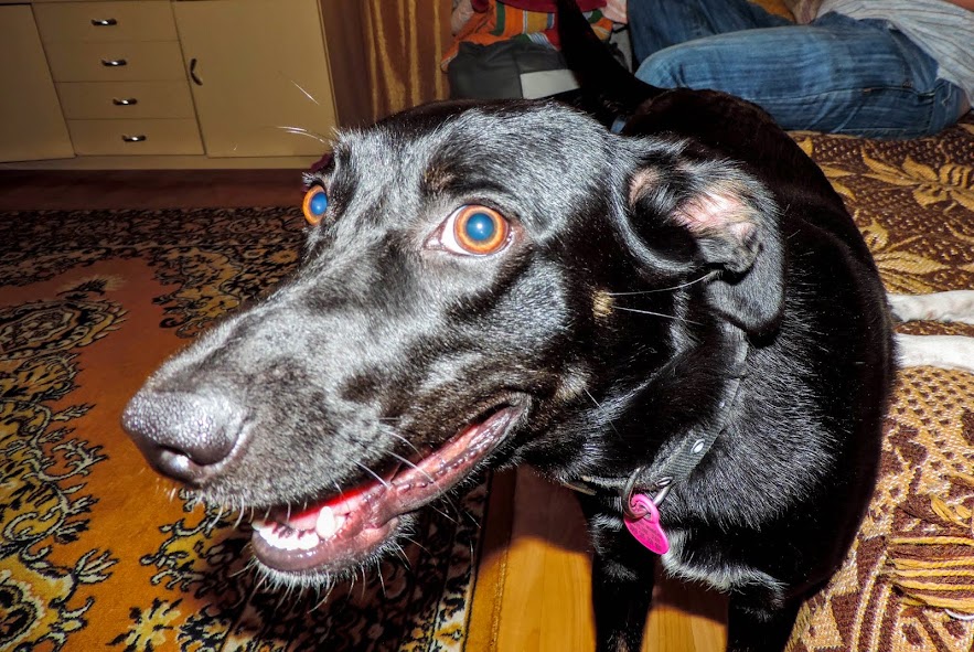 Wiecie, jeśli niepewny siebie pies w sytuacji stresowej ma do wyboru "flight or fight" to Raven wybiera to drugie. Czyli - idzie do nas Straszny Obcy Facet, gapi się, zaczyna coś mówić (np. pyta o godzinę albo cokolwiek) - należy się zjeżyć, burczeć, zarzucić sobie ogon na plecy i wydrzeć mordę, może sobie pójdzie. Tak samo należy zachowywać się mijając obcych ludzi na klatce schodowej, tak samo należy odstraszać ludzi, którzy mają czelność podchodzić i zaczepiać mamę jak pan punk na dworcu PKP, pogoniony z rykiem godnym niedźwiedzia grizzly, po raz kolejny wspomóżmy się Sucharkami, żeby zobrazować problem...
